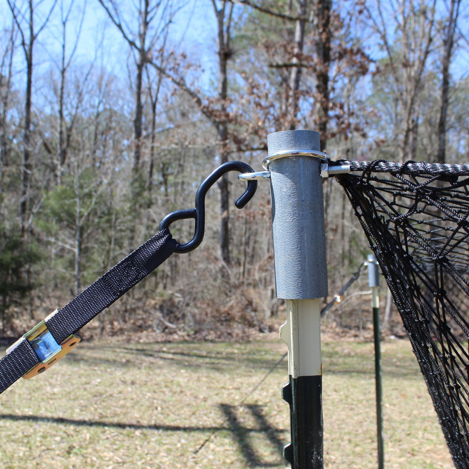 Slide the post sleeves on top of the T-posts so that the net rings can be placed over and securely rest at the correct height (5 feet). Our design features a removable cable seam that is woven through the netting, reinforcing its continuous, double-layered structure.