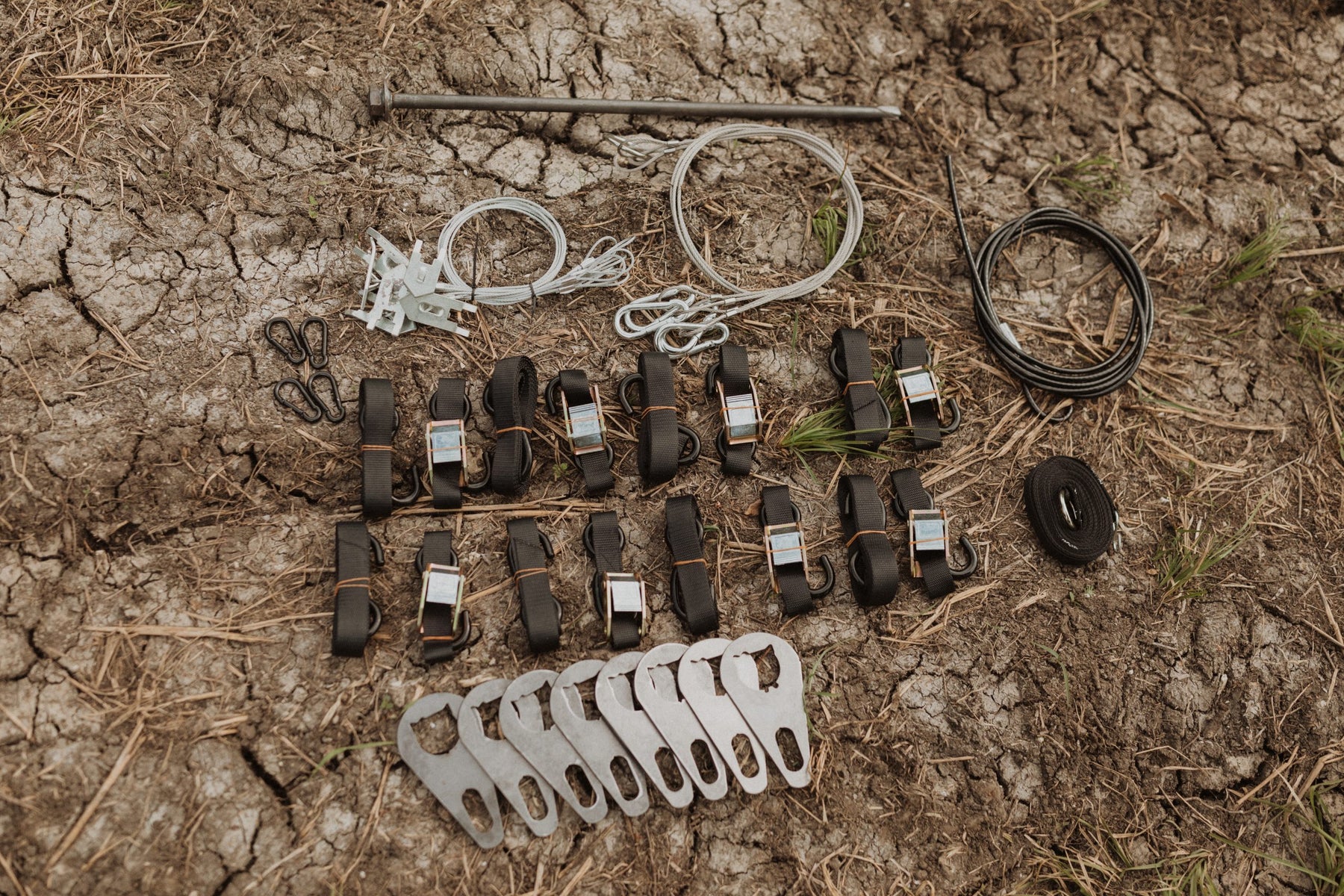 Use the supplied cam buckle straps and carabiners to pull tension on the outer rope, then adjust the three inner ropes (the cap, mid-level, and inner ropes) to perfectly fit your site’s conditions. A final step with the inner cable system helps direct the net toward the center, ensuring a robust and effective trap system.
